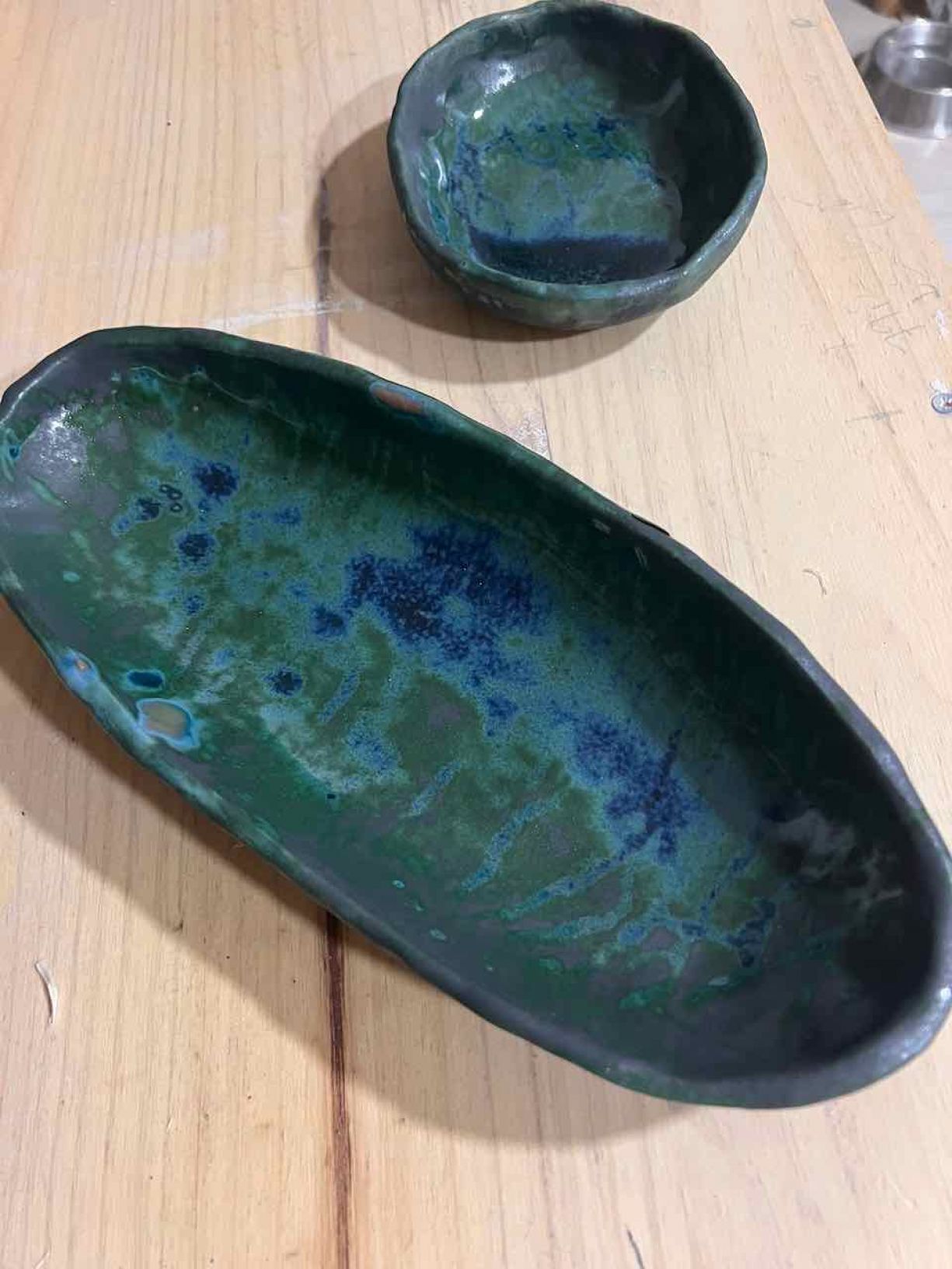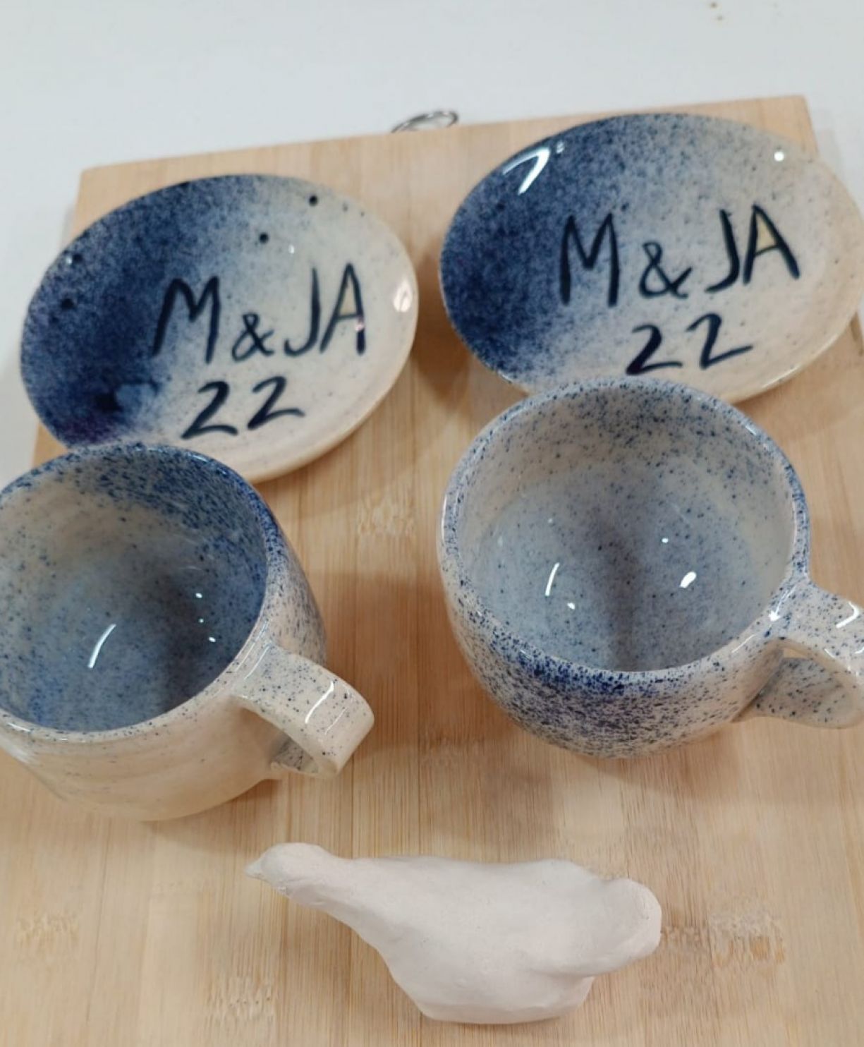 Nos encargaron nuestra primera vajilla como regalo de boda. Creamos un color, hicimos pruebas, ajustamos el horno. Los novios nos han escrito para felicitarnos.